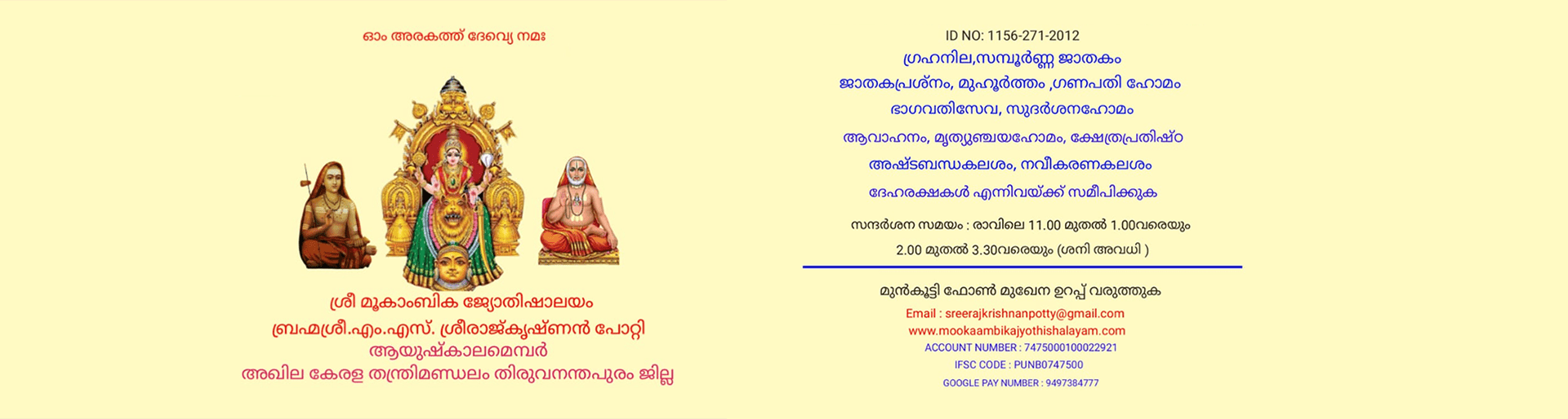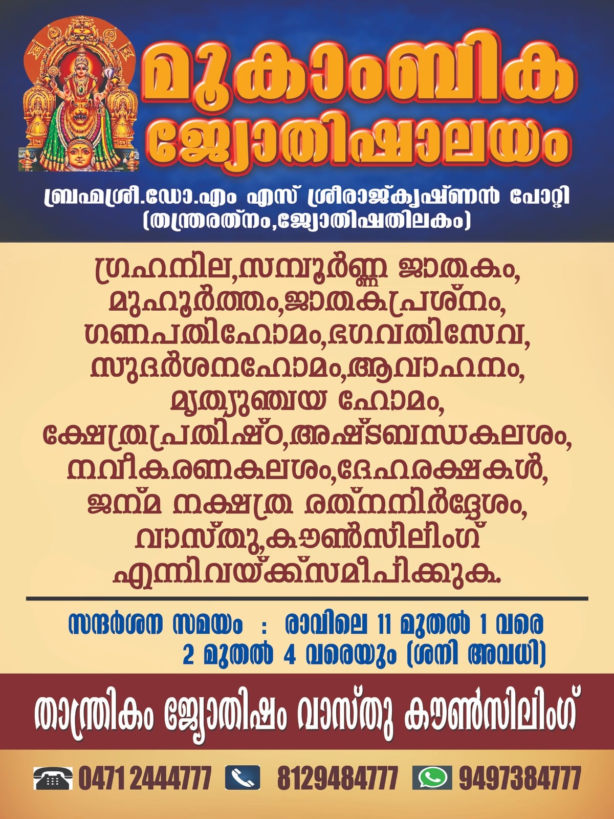 മൂകാംബിക ജ്യോതിഷാലയത്തിലേക്ക് സ്വാഗതം