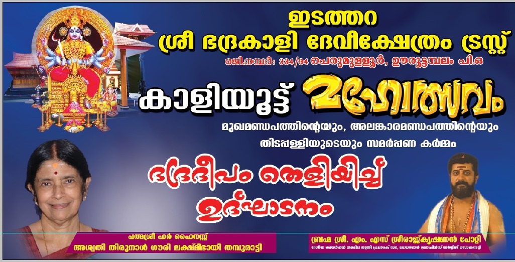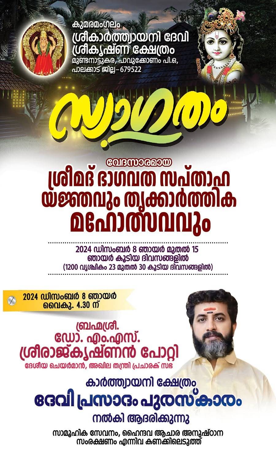 അച്ഛൻ (Late) : ബ്രഹ്മശ്രീ വി. മോഹനൻപോറ്റി, മംഗലശ്ശേരി മഠം, കൊട്ടാരക്കര.