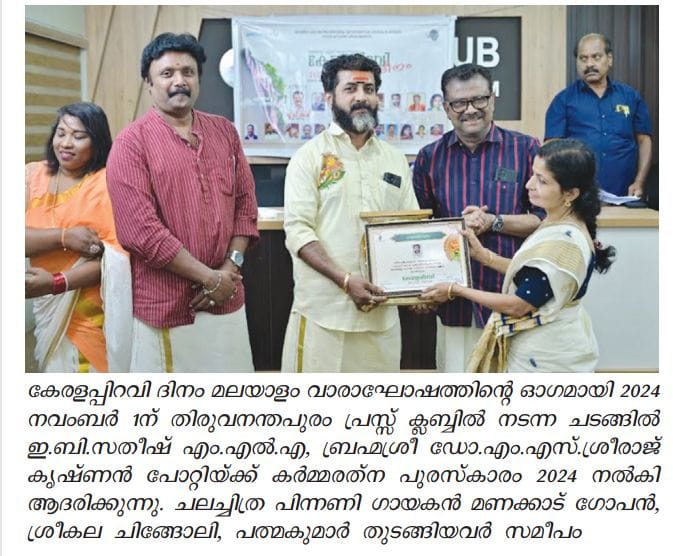 - 2024 രാജാ രവിവർമ്മ പുരസ്കാരം.
