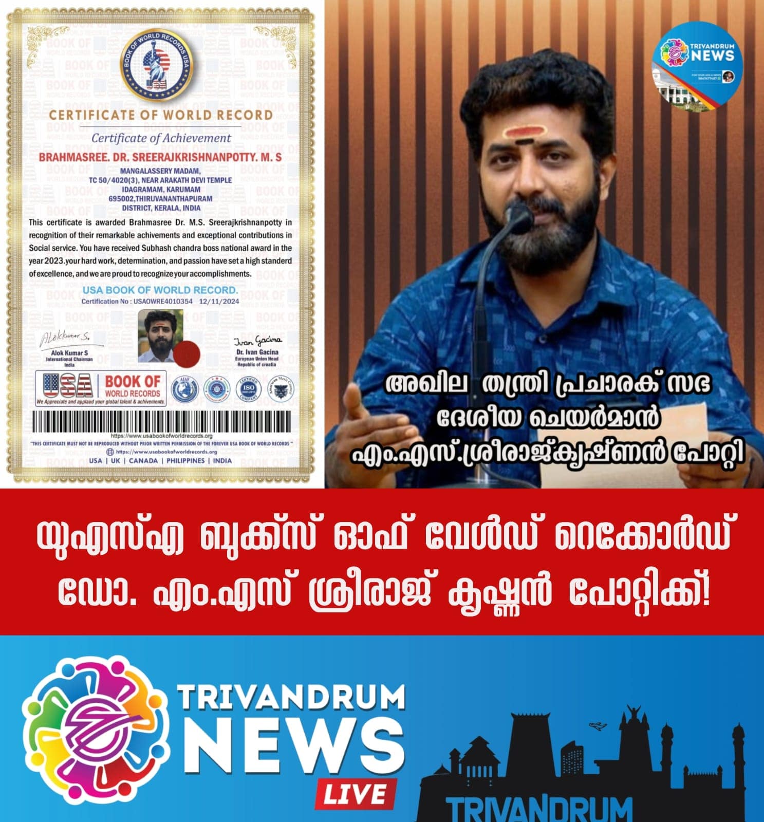 - അഖില തന്ത്രി പ്രചാരക് സഭ ദേശിയ ചെയർമാൻ.